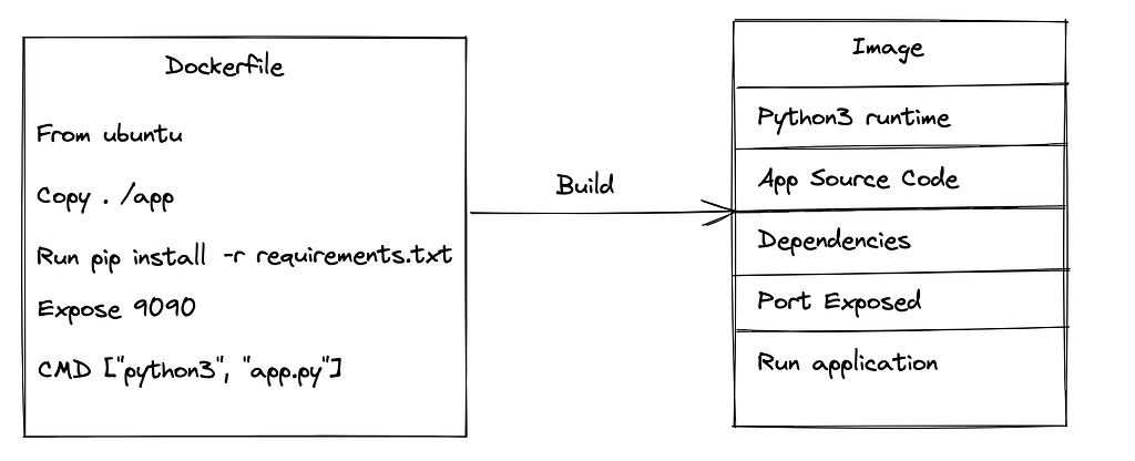 - To create an image with your application’s code, you create a text file named Dockerfile that lists the necessary commands. The Docker builder uses this file to build the image. After building the image, you can store it in a container registry for version control.